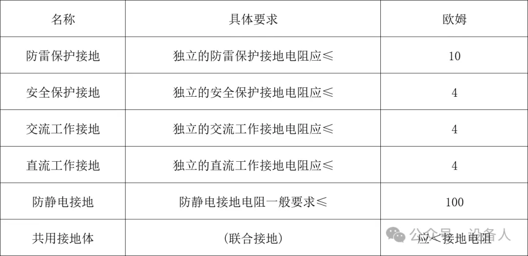 对接地电阻有不同的要求